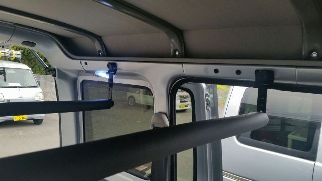 2列目手すりに固定金具を利用し、荷室3列目に蝶つがいステーをネジ留めする組み合わせタイプはこちらです