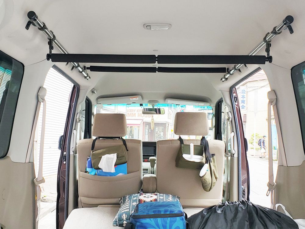 ●前バー・後ろバーは、ちょうど車内のじゃまにならないデッドスペースに固定することができます。