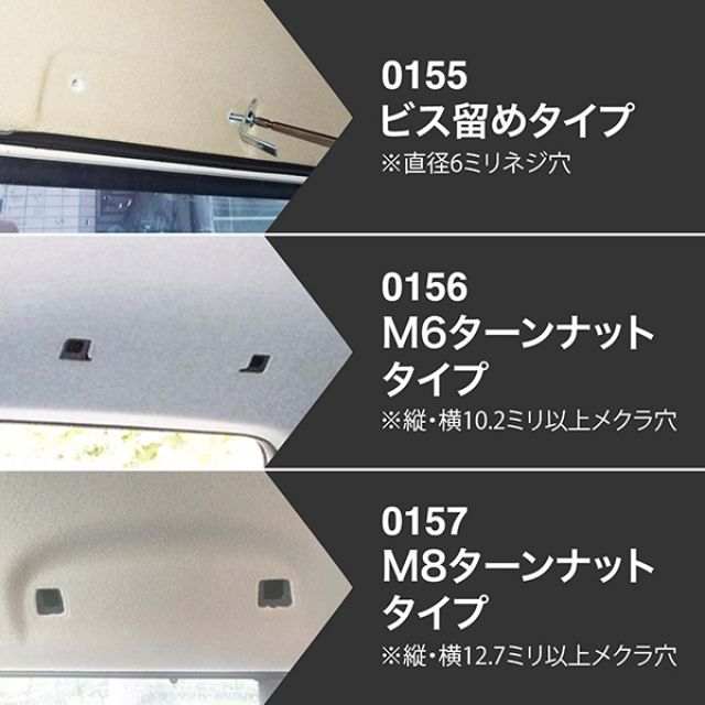 リアシート上(アシストグリップ)を外した際のメクラ穴が縦・横12.7ミリ〜であれば他の車種でも使用可能です。