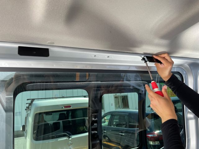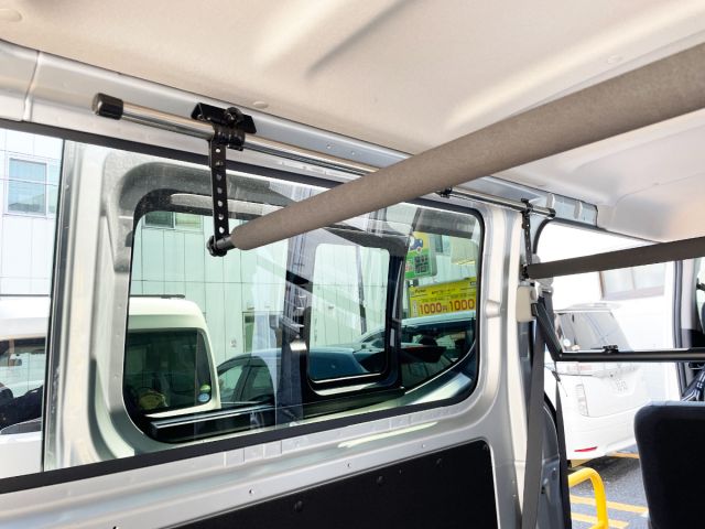 ●お仕事にもアウトドアにも、ここに市販のクリップミニ扇風機やライト、ランタン、メッシュネットなどを取り付けることもできます。車内泊には必須、マストアイテムです。