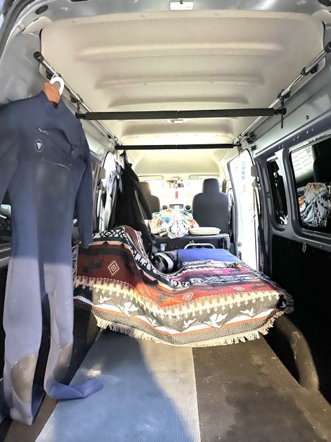 ●お仕事にもアウトドアにも、ここに市販のクリップミニ扇風機やライト、ランタン、メッシュネットなどを取り付けることもできます。車内泊には必須、マストアイテムです。