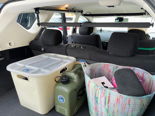 前バー・後ろバーそれぞれ車内の最も邪魔にならないデッドスペースに固定することができます。