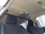 ●リアシート2列目の手すり(アシストグリップ)を外して伸縮するアルミフレームサイドバーを取り付け、
