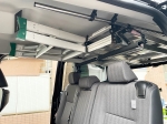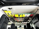 ●サイドバーにLEDライトやクリップ扇風機の他、散らかりがちなアウトドア用品なども車内もオシャレに収納。