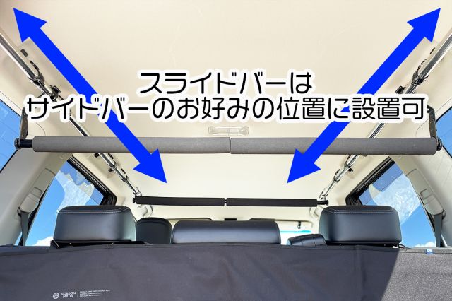 サイドバー上のお好きな位置にスライドバーを取り付けできるので、ラゲッジスペースと天井空間を有効活用。
